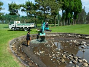 5番ホールの池の大掃除を行い、その際に回収したロストボールの販売代金を、当ゴルフ場隣接の“熊本県菊池支援学校PTA様”に寄付致しました。