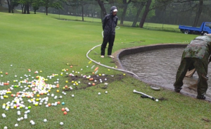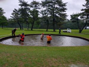 5番ホールの池の大掃除を行い、その際に回収したロストボールの販売代金を、当ゴルフ場隣接の“熊本県菊池支援学校PTA様”に寄付致しました。
