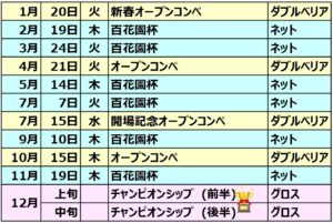・百花園杯(6回 : 2月、3月、5月、7月、9月、11月) : 百花園ハンディをお持ちの方。ネット方式