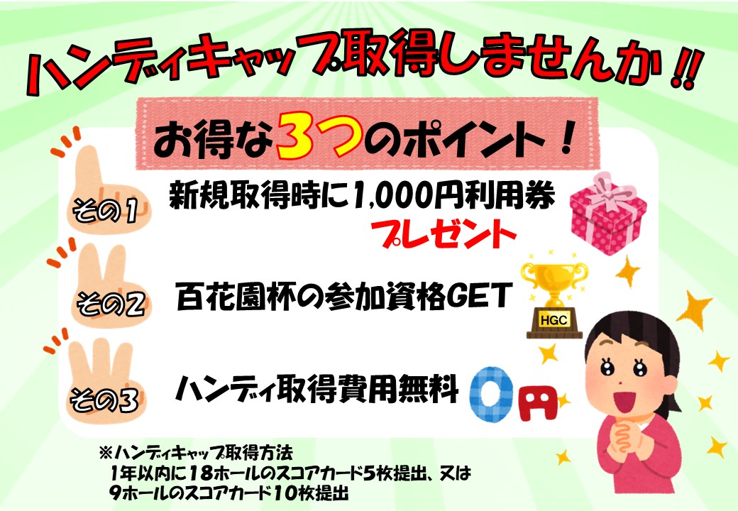 1.ハンディキャップ(HDCP)取得キャンペーン内容 (1)新規取得時に1,000の割引利用券をプレ...