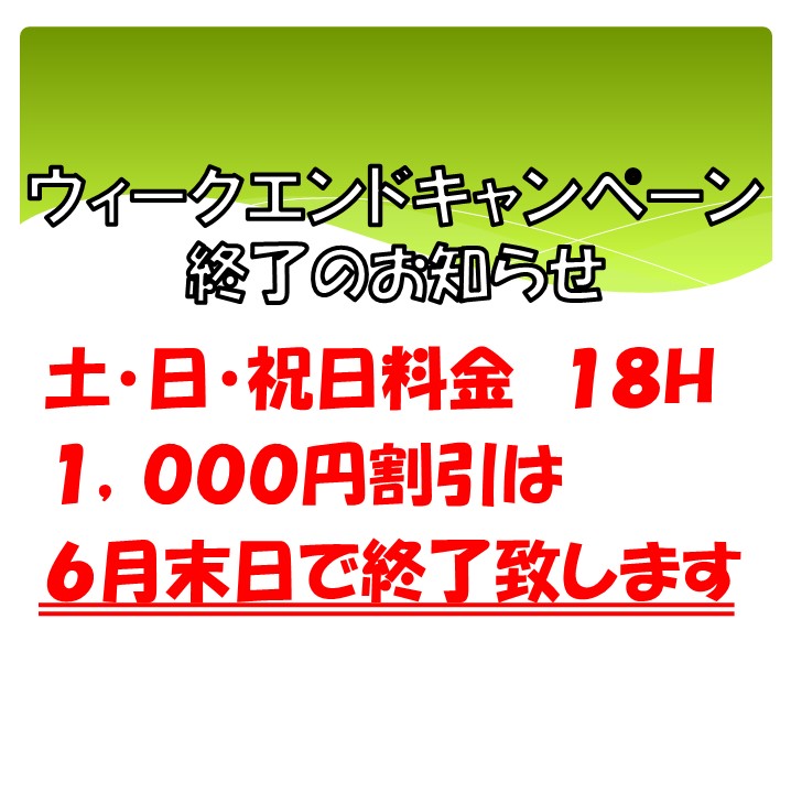土・日・祝日料金 18ホールの1,000円割引は、6月末日で終了します。