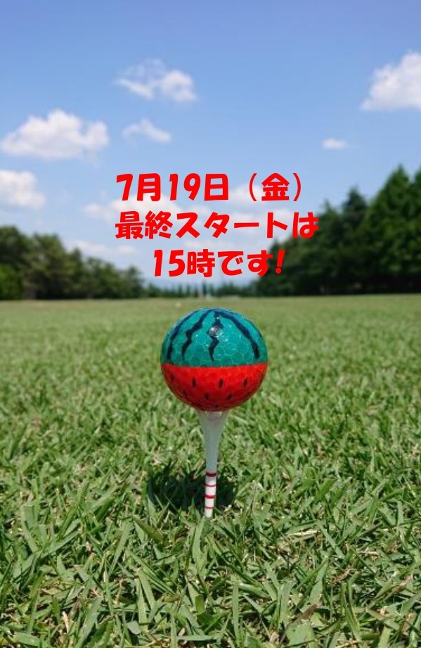 7月19日(金)の最終スタートは、都合により15時とさせていただきます。 受付カードをお持ちでないお...