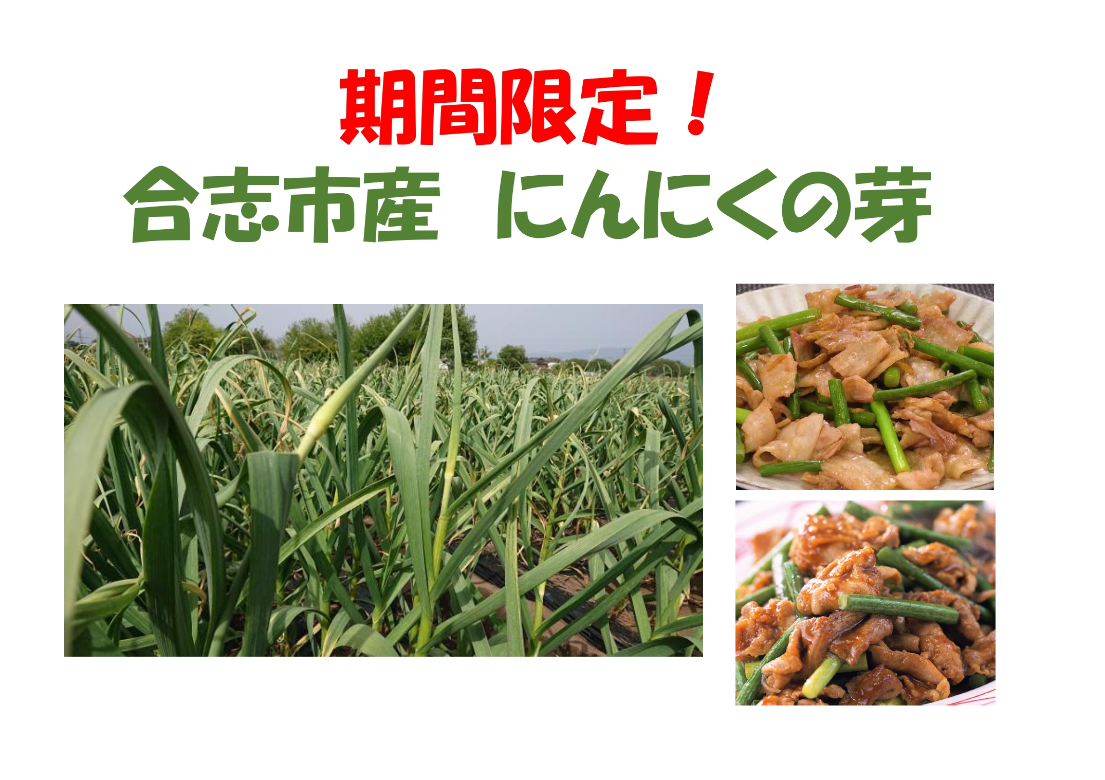 合志百花園ファームで作っていますにんにくの芽を期間限定でゴルフ場受付で販売しています。 にんにくの芽...