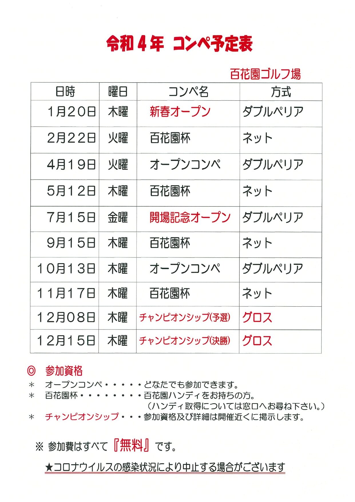令和4年 年間コンペのご案内 ◎参加資格 ・オープンコンペ : どなたでも参加できます。👌 ・百花園...