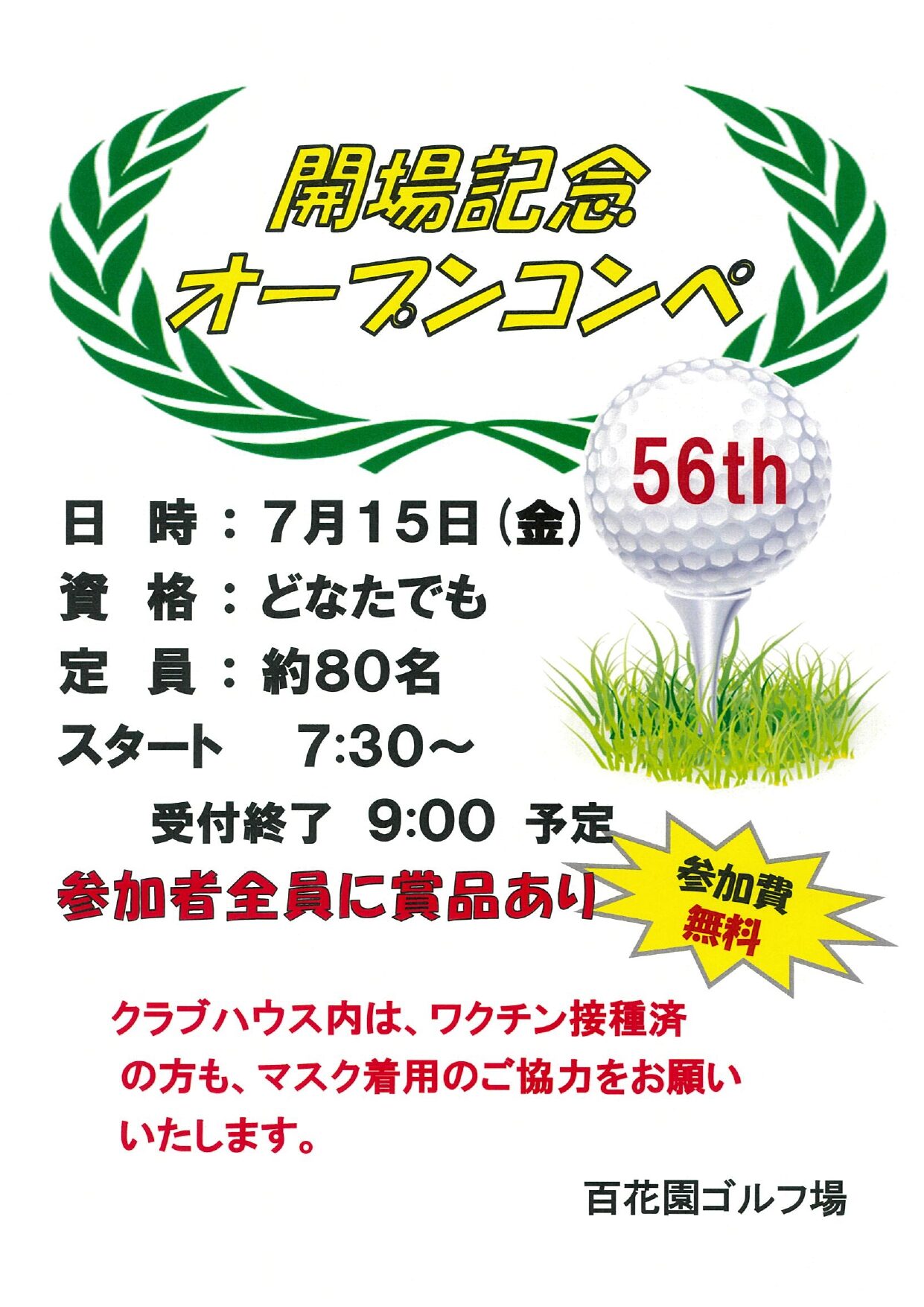 ⛳百花園開場56年 開場記念オープンコンペのご案内⛳ 皆様のご愛顧を受け、おかげさまで百花園ゴルフ場...